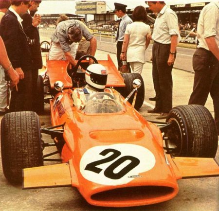 The true 1967 McLaren Formula 1 car, the one off M5 was late starter due to delays with its BRM V-12 engine. Its first race was the Canadian GP and was a strong second till the battery had to be replaced during the race.