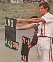 For the 1974 F1 season McLaren was committed to running two separate independent teams. A two car team for Hulme and Fittipaldi with new sponsorship from Texaco, together with a one car team with Mike Hailwood driving under the old Yardley sponsorship. The outcome of my so called ‘quick visit’ to the factory to say “Hi’, was an agreement that I would be responsible for the Yardley Team on the understanding that Laraine be allowed to travel with me. Mike’s race placings were mostly mid field but it was enjoyable with plenty of hard work keeping the car running. He unfortunately crashed heavily at Nurburgring breaking an ankle and Jochen Mass was called in to finish the seasons driving duties.