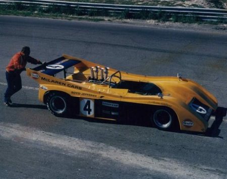 The 1971 Can-Am M8F car was designed by G. Coppuck and included a number of innovations. It ran with an 8 litre Chevrolet built by McLaren Engines using the new Reynolds all alloy cylinder block. Horsepower was rated in excess of 740hp.