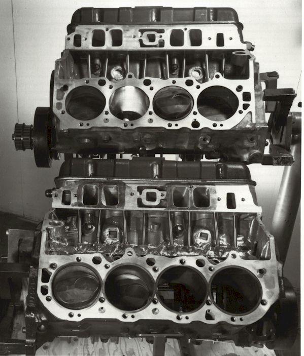 When the McLaren team started building its own engines is established a separate division, McLaren Engines in Detroit. Colin Beanland was named General Manager . When the engines arrived from Chevrolet, they were the absolutely bare 430 cubic inch aluminium blocks as sold over the counter. (see the picture of the first aluminium engine block in auto racing history made without iron cylinder liners (top). Below is the 465 cubic inch eight cylinder Chevrolet engine with the customary iron cylinder sleeves) McLaren designed the fuel injection manifolds (see picture of the ram stacks for the fuel infection on the McLaren built Can-Am Chevrolet engine) See Mike Stuckers excellent six part series on the Can Am cars |