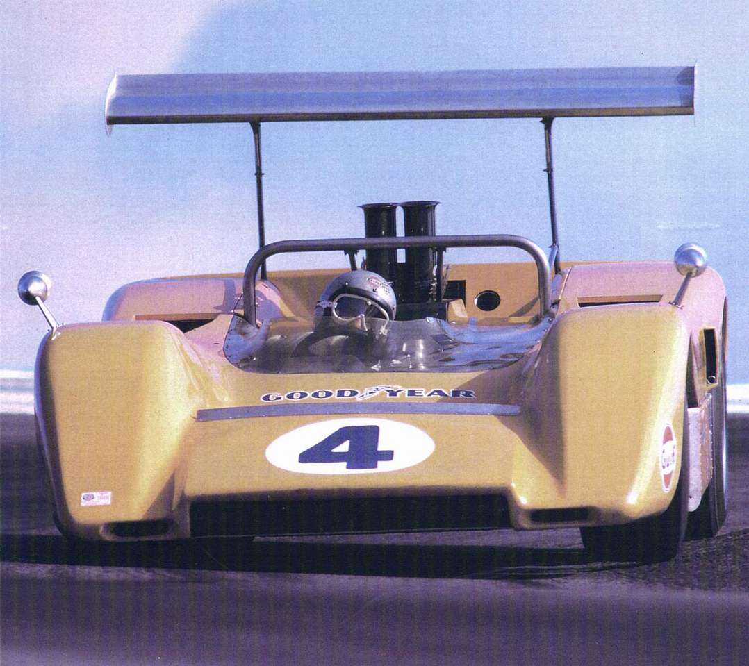 And thats how the McLaren team made it look easy at the 1968 Can-Am series Bruce McLaren is a nice enough little guy, and Denny Hulme shrugs his shoulders at most things including cleaning up the Can-Am championship, but the big question is: How did the two New Zealanders manage to walk away with the races so easily? You know how it went for them, winning four of the six races and, if you will excuse me for saying so, only failing to win the other two because of freak things like both cars breaking at Bridgehampton and the untimely arrival of the winter monsoon at Laguna Seca. At every race it seemed as though they had come to the track ready to go out and race whereas the other famous hotshoes were using practice as a test session to find out what they should have already known before the series started. I saw the last two races in this years series and the superiority of the McLarens was almost embarrassing. Early in the series the two McLarens were in oiling troubles that were cured when they junked their tweaky arrangement in favour of some more standard GM equipment in the piston ring department. Then they were back up to power par and it was an achievement to keep them in sight, never mind dice with them. Jim Hall and the Chaparral was the combination they feared most, although they knew the canny Penske would ensure Donohue was climbing the championship points ladder without risking his reputation or the motorcar in a track battle. The Penske policy paid off as Mark got 3rd place points money. Andretti, Gurney and Revson, three men who might have fielded a challenge to the McLarens, chanted engines halfway through the series when Ford made a last-ditch attempt to foil the Chevy-powered walk-over. But the aluminium 427 Ford was an oiler and the teams who accepted Fords help must have wished they hadnt. Bruce McLaren is a New Zealander, hes 32 and while he isnt the fastest driver in the world, he makes up for any lack of natural talent with tremendous energy and engineering ability. Hes a cheerful stocky charger who looks like the boy next door, but he has been in the racing business longer than most people. He was racing an Austin 7 special in New Zealand when he was 15 and was Grand Prix racing in Europe when he was 21. He has also been racing in American events longer than most drivers. In 1960 he drove Briggs Cunninghams prototype E-type Jaguar at Laguna Seca, and in 1961 he almost won Riverside in a Cooper Monaco. The following year he and Roger Penske shared a Monaco fitted with a Maserati engine at Sebring. "After that race I cam back to England and asked Charlie Cooper if I could run the sports car side of the Cooper Car Company because I felt sure there was a tremendous market for this type of car to use an American engine for American racing. I was convinced at that stage that sports car racing was going to really boom providing there were cars available, and that it would be a great market for an English manufacturer. Charlie turned me down flat." Two years later McLaren bought the ex-Penske Zerex Special from John Mecom. The car had been sitting in the corner of the Mecom workshops under a dust sheet, along with an aluminium Oldsmobile engine that nobody had gotten around to fitting. After a couple of races in its original Climax-engined form, McLaren and his mechanics, Tyler Alexander and Wally Willmott, switched the engines in McLaren Racings first workshop an unbelievably grimy shed that they shared with an earthmoving grader! McLaren won first time out at Mosport. The Zerexs chassis was a willowy affair, so McLaren decided to design a stiffer one. This tubular frame was completed and ready for painting one Sunday, but the only paint that could be found in sleepy England on a Sunday morning was a tine of garden gate green. So the car was christened the Jolly Green Giant. Because Bruce was still with Cooper in Formula 1 the car hadnt really been called anything, nobody daring to call it a McLaren after the rumpus there had been when Jack Brabham started to build his own cars while still at Coopers! But there was no holding McLaren now. If he could build a chassis, he could build a whole car, so he did. He was convinced that a lightweight engine with a reasonable amount of power would be the equal of a cast iron engine with more power, the equalling coming through a superior power-to-weight ratio. It took two seasons for McLaren to realise that nothing beats cubic inches, and he switched to 6 litre Chevy's for 1967. The M6As with their cast iron Chevy's were conventional motorcars that won because they were well sorted, reliable and had impeccable attention to detail. The M8A by comparison was an exotic motorcar with the aluminium 7 litre Chevy V8 hanging off the back of the monocoque. "We started running a prototype car in March this year. It was really one of last years cars with lower profile tyres and the body cut down. Then we tired a cast iron 427 engine in it, a litre bigger than the engine we ran last year. When we first offered the engine up to the chassis, it looked like an engineering impossibility, but bearing in mind our Formula 1 construction with the stressed Ford engine, our Can-Am solution was obvious. The old chassis was cut in half and the engine became the rear of the car with the rear suspension hanging off a subframe. With this mobile test rig we tried a dry-sump setup, wings, new brakes, and all the while the new M8A was taking shape on the drawing board." The initial test with the first of the new cars was on July 16th, but Englands traditionally showery summer weather interrupted continuous concentrated development. Bruce crashed one wet morning at Goodwood knocking a corner off the car and setting progress back even further. While development on the first chassis and the construction of Dennys chassis was coming along in England, Gary Knutson, an ex-Chaparral man from away back, and Colin Beanland, a Kiwi who had been McLarens racing mechanic i