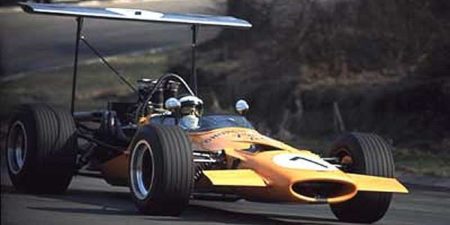 The true 1967 McLaren Formula 1 car, the one off M5 was late starter due to delays with its BRM V-12 engine. Its first race was the Canadian GP and was a strong second till the battery had to be replaced during the race.